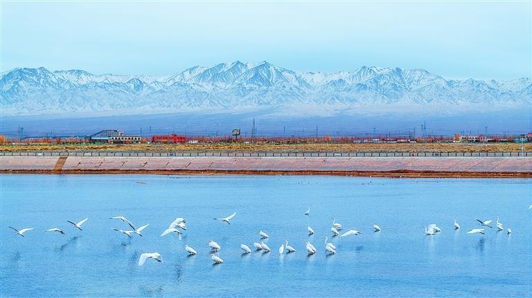 候鳥落腳甘肅鹽池灣國際重要濕地。新甘肅·甘肅日報通訊員 祁晶