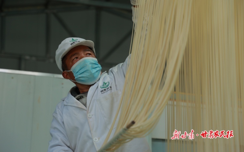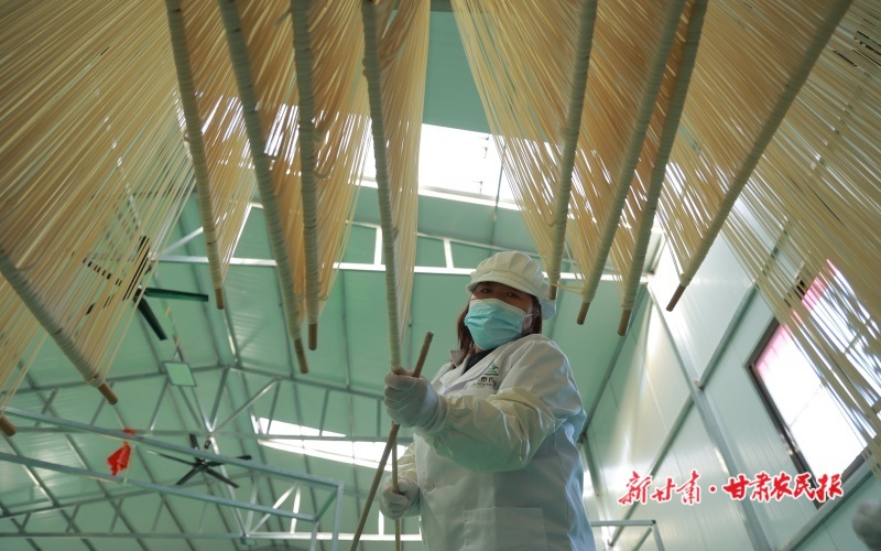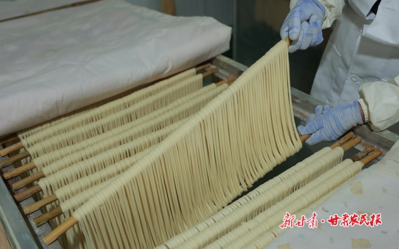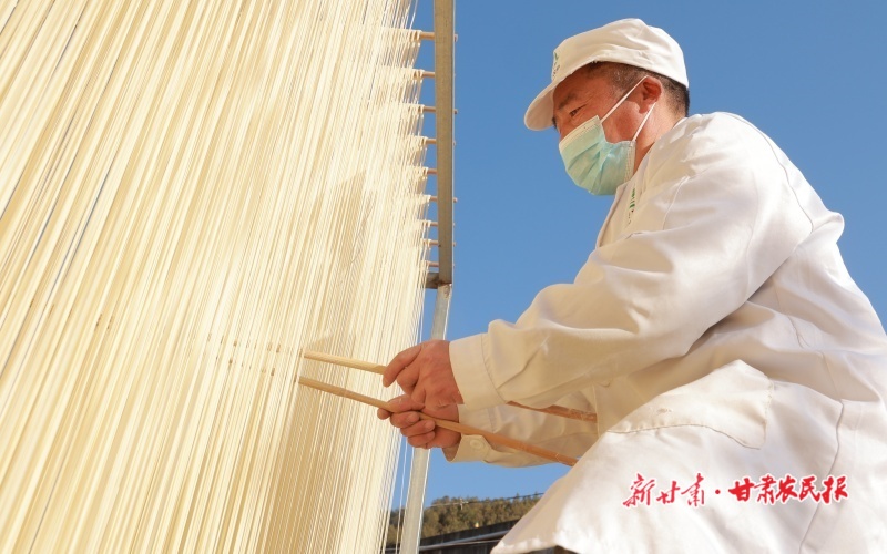 入冬之后,隴南市康縣傳統(tǒng)的純手工掛面迎來生產(chǎn)、銷售旺季,農(nóng)家院里晾曬的細長掛面成為寒冬鄉(xiāng)村的一道亮麗風(fēng)景。圖為12月7日,隴南市康縣平洛鎮(zhèn)團莊村隴南潤泰農(nóng)業(yè)科技有限公司鄉(xiāng)村就業(yè)工廠的手工掛面生產(chǎn)車間里,工作人員正在加工、晾曬手工掛面。據(jù)負責(zé)人劉成輝介紹,掛面廠目前日產(chǎn)掛面五百余斤,除了線下銷售給周邊新老客戶外,還通過電商平臺銷往山東、陜西、廣東等各省份。新甘肅·甘肅農(nóng)民報通訊員 黃培軍 攝
