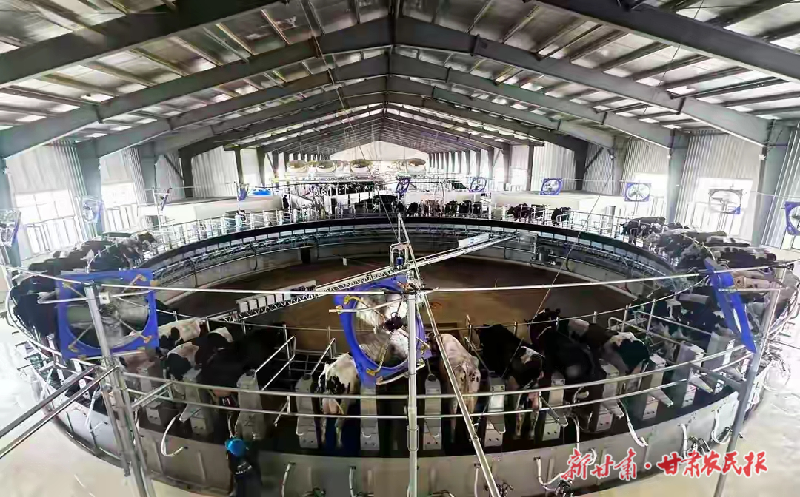 在甘肅卓越富銘生物科技有限公司的牧場內,80位轉盤擠奶廳里,國際先進的擠奶設備高效運轉,剛擠出的牛奶經管式換熱器瞬間降溫至1℃,最大限度保留營養與新鮮度。這家成立于2024年的現代化牧場,以高起點規劃、高標準建設迅速躋身行業前列。