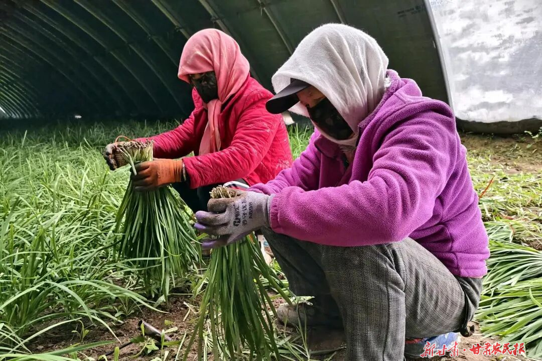 寒冬時節,古浪縣橫梁鄉五道溝的日光溫室大棚內暖意融融、生機勃發。一壟壟韭菜整齊排列,翠綠的葉片舒展挺拔,葉莖修長粗壯,空氣中彌漫著濃郁的辛香,一派豐收的喜人景象。