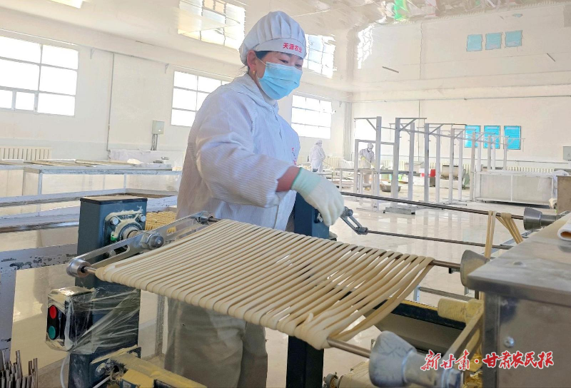 循著濃郁的麥香,走進古浪天源農業開發有限公司的生產車間,一派繁忙景象映入眼簾。工人們穿梭在各條生產線之間,壓面、盤面、打包……一道道工序有條不紊地推進。晾曬架上,潔白掛面如銀絲般垂落,包裝線上,一袋袋封裝好的掛面經掃碼打標后,被工人麻利地整齊裝箱,這些帶著古浪風土氣息的特色產品,即將奔赴全國各地的餐桌。