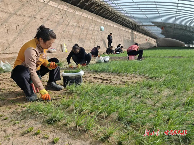 在大壩鎮文二村種植戶盧向家的溫室大棚里,沙蔥成畦,翠綠連片,濃郁的蔥香撲面而來。務工的婦女們組成臨時“采收隊”,忙著采收、裝袋、過秤,享受著豐收的喜悅。