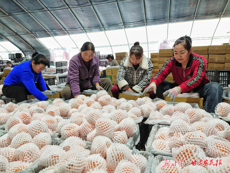 李紅霞和姐妹們正在包裝人參果。